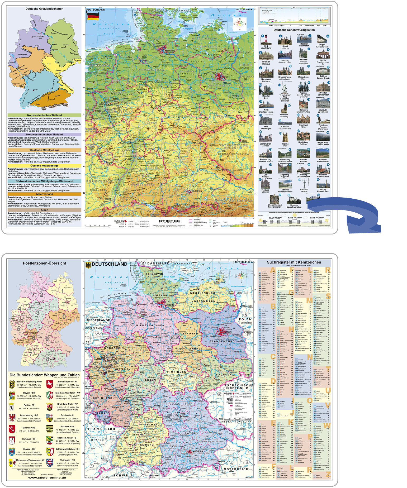 2-seitige Schreibunterlage Deutschland physisch / politisch