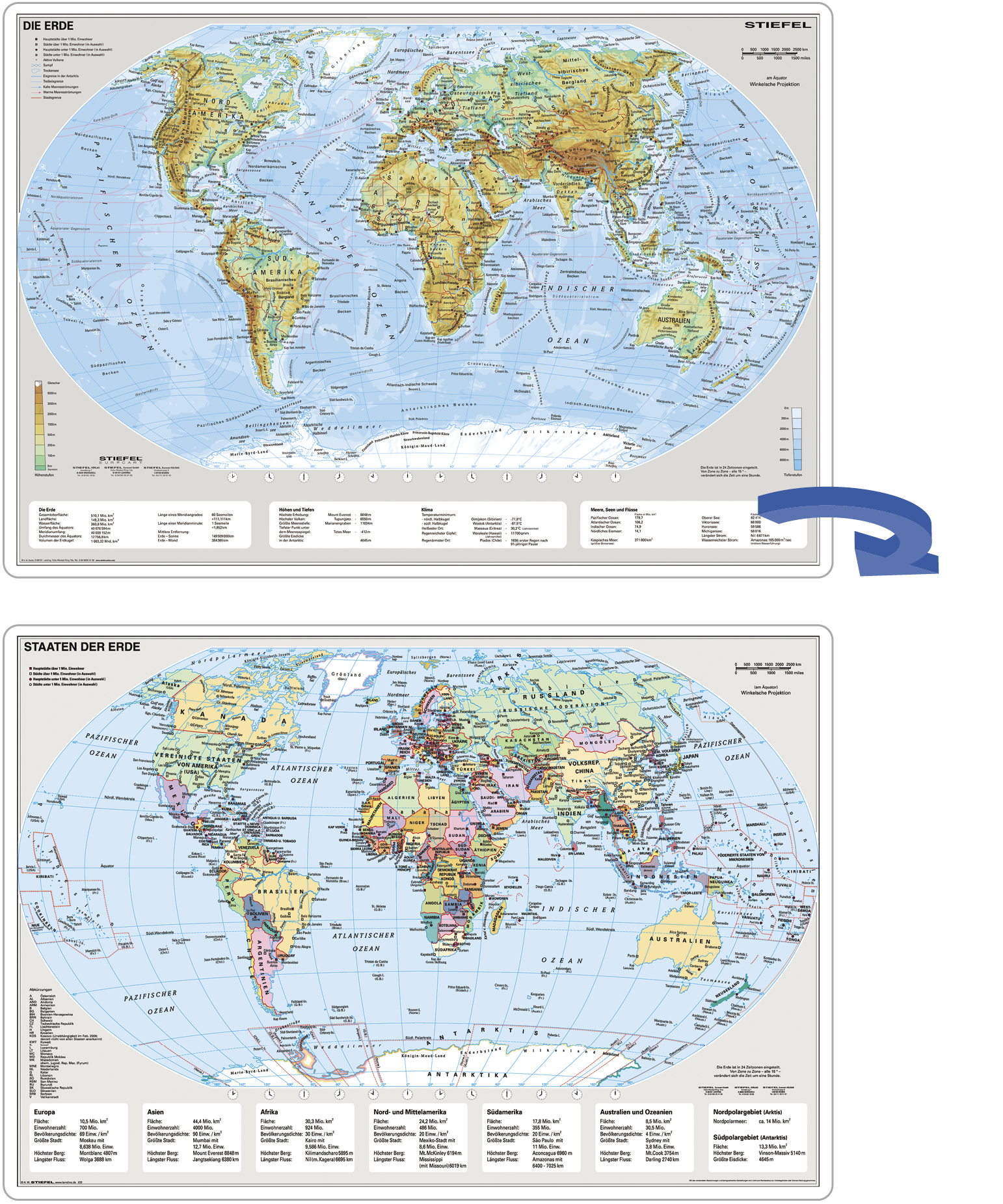 2-seitige Schreibunterlage Erde physisch / politisch