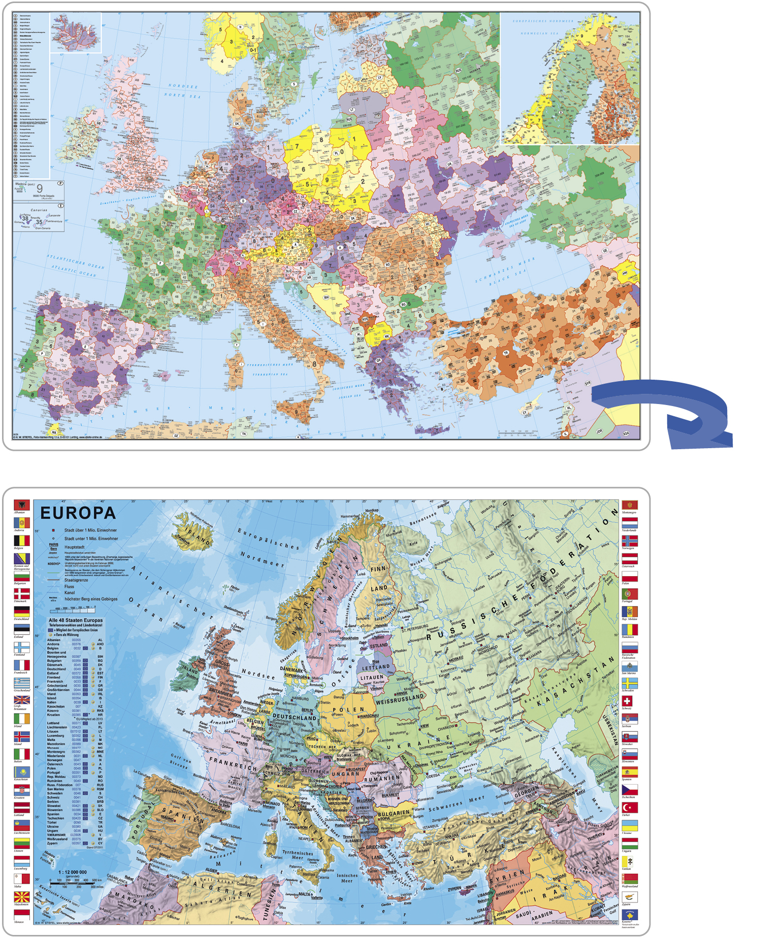 2-seitige Schreibunterlage Europa PLZ Bereiche / politisch