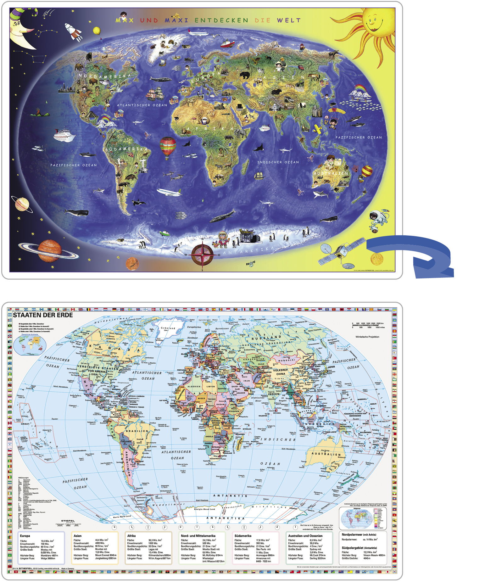 2-seitige Schreibunterlage Kinderweltkarte / Staaten der Erde